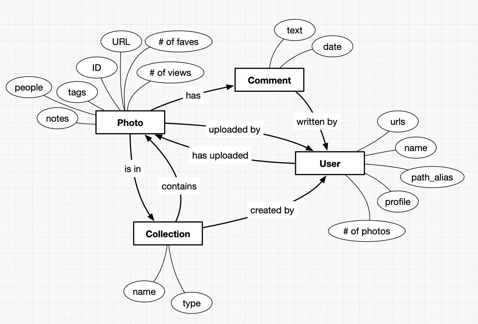 We’ve begun working on the software approach to create a Data Lifeboat, focussing on the data model and assessing existing protocols we may use to help package it. Alex and George started creating some small prototypes to test how we should include metadata, and have begun exploring what “social metadata” could be like – that’s the kind of metadata that can only be created on Flickr, and is therefore a required element in any Data Lifeboat (as you’ll see from the diagram below, it’s complex).