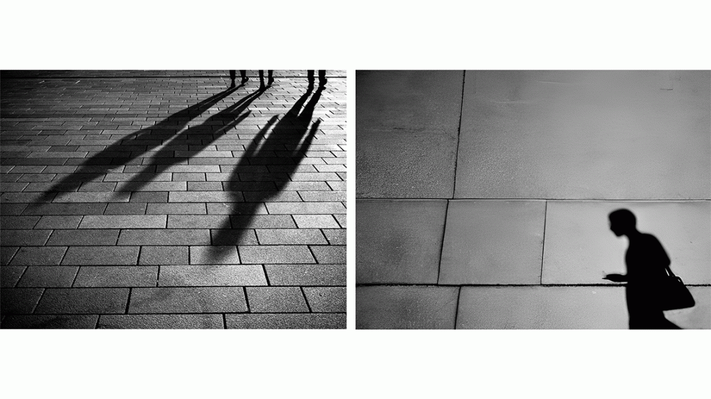 In the images accompanying this text, I’ve paired images created in Stable Diffusion 1.6 for the prompt “Flickr.com street shadows.” They’re paired with images from actual Flickr members. I did not train AI on these photos, nor did I reference the originals in my prompts. But by pairing the two, we can see the ways that the original Flickr photos might have formed the hazy structures of those generated by Stable Diffusion.