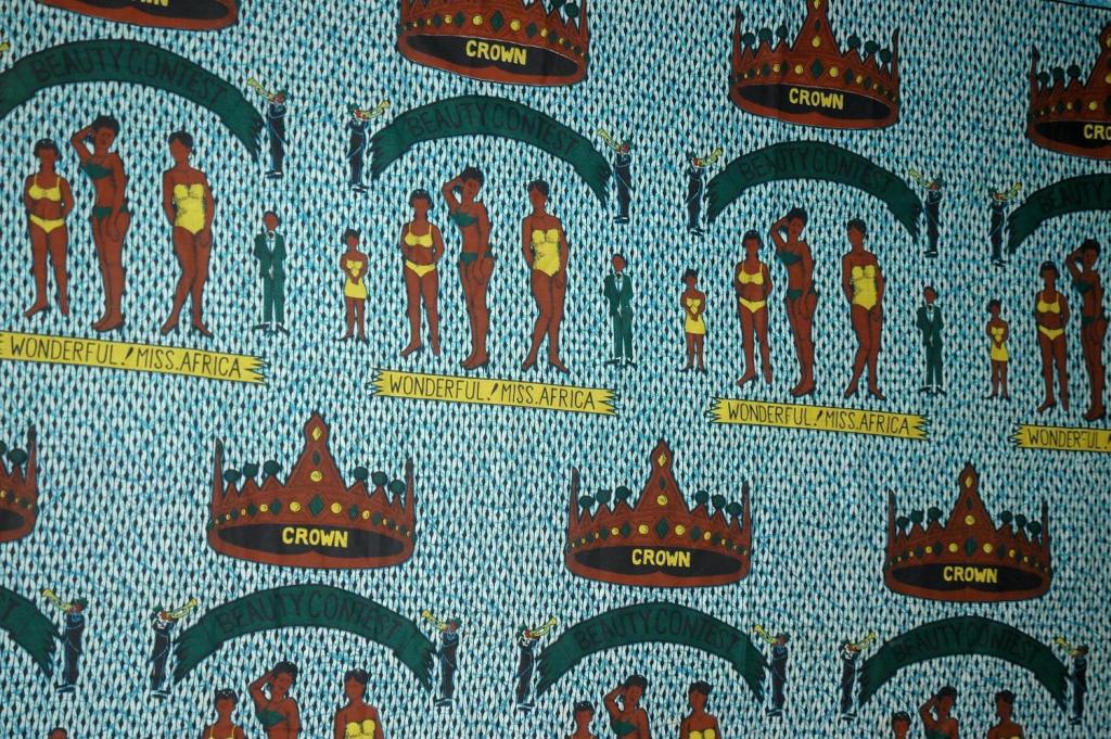 That collection became instrumental in my research into African commemorative cloth—its symbolism, function, and cultural significance. One standout was the Miss Africa wax-print cloth, beautifully documented with extensive metadata about its origins. Another was a cloth featuring the Nigerian National Theatre, which may have been produced around the time of FESTAC ’77, the landmark Second World Black and African Festival of Arts and Culture held in Lagos in 1977.