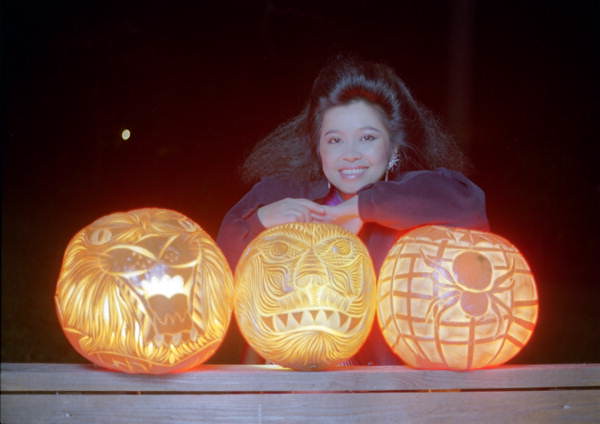 Pam Maneeratana displays her carved pumpkins: Tallahassee, Florida, 1987