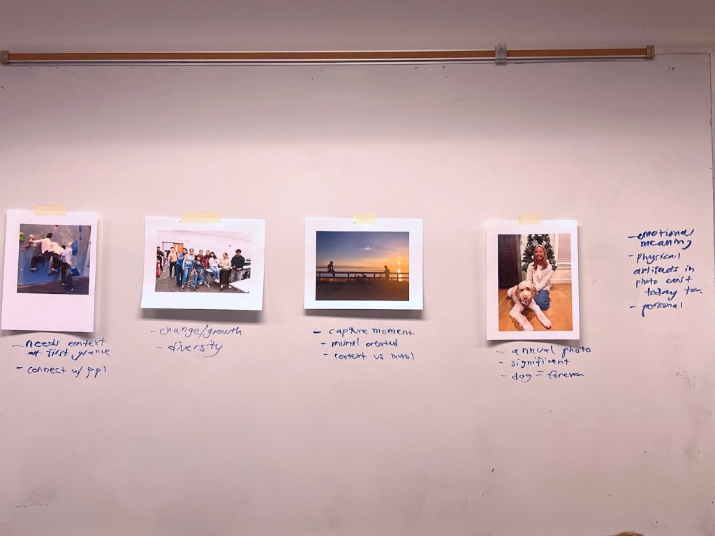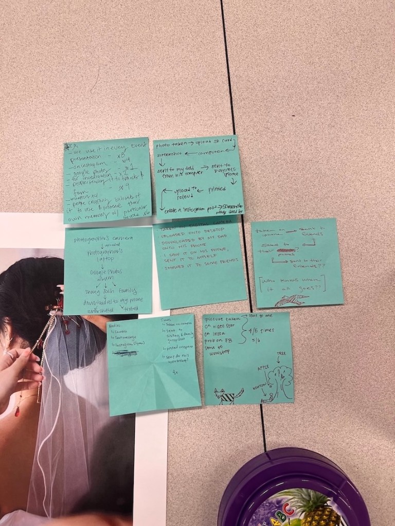 After printing out physical copies of the photo, we asked each of the participants to describe the significance of the photo they submitted. 7 out of the 8 photos were of family and friends, and preserved for the purpose of family and friends to look back on. The last photo was of members of a diverse computer science club, and preserved for the purpose of the club’s mission. Following participant’s descriptions of these photos, as a provocation, we ripped the physical photos to shreds to symbolize the deletion of photos online. We then observed participants’ reactions to this. In discussion they concluded that although it was shocking and visceral, as long as the memories associated with the photo were still well and alive, losing a physical copy of it is okay.