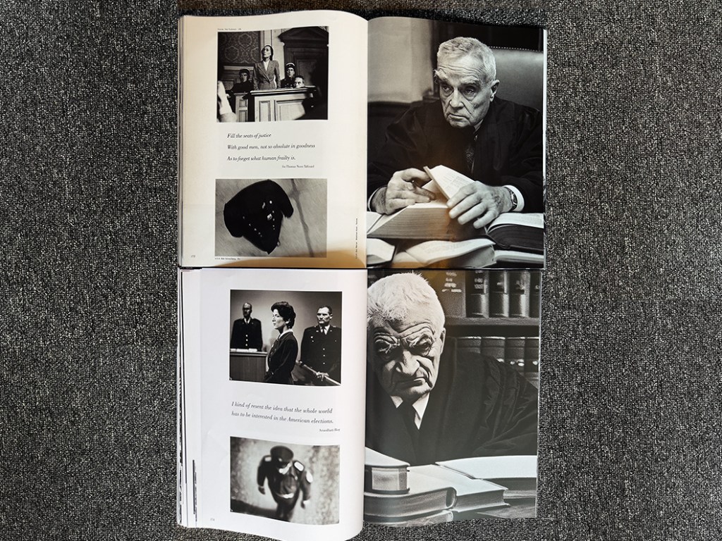 Here are the caption iterations we made for the image of the judge (shown above, on the right page of the book):